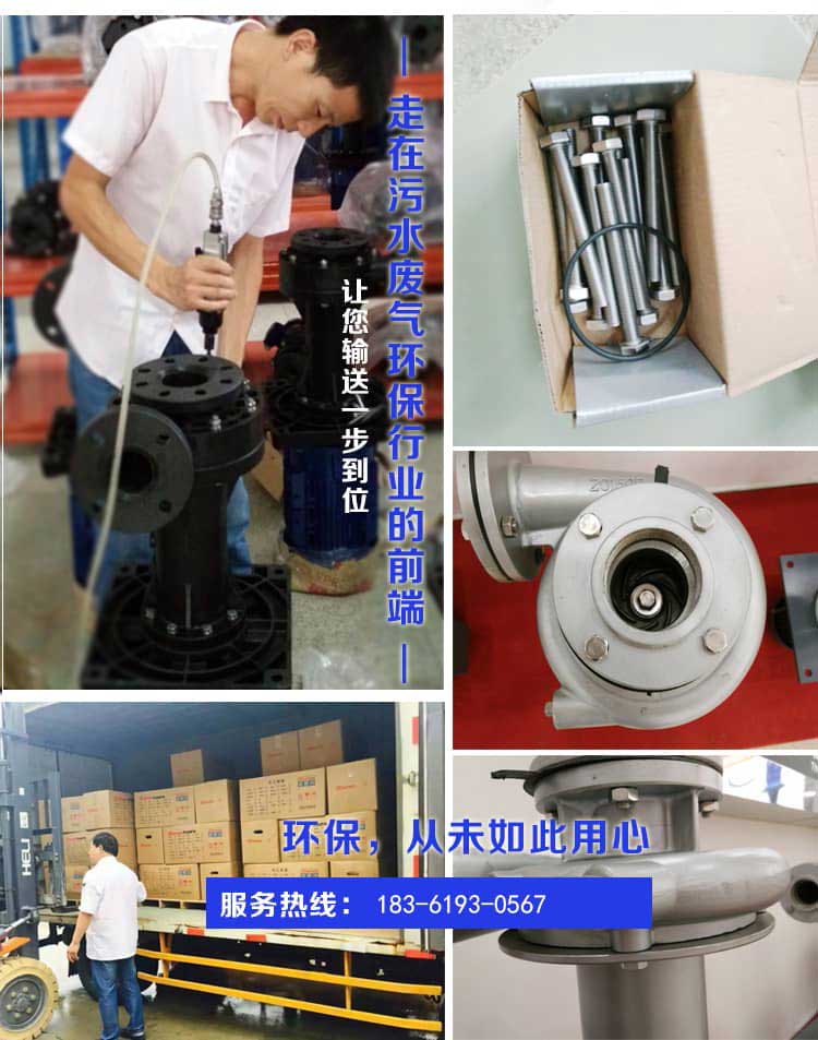 不锈钢液下泵的产品 势: 1. 采用不锈钢316或鈦金属精制铸造成型,无沙孔问题,叶轮效率高。 2.电机采用台湾东元电机,加大规格轴承,有效减少泵的偏振。 3. 适合各种酸碱液、微酸液循环使用,耐高温。而且泵浦体积较小,适合槽内槽外设计使用。4.采用无机械密封设计,克服离心泵泵的不能干转或空转的要求。因此,在吸入口阻塞或出口阻塞或液体有结晶的情款下都不会发生泄漏的情况。从根本上解决了“跑,冒,滴,漏”的问题。